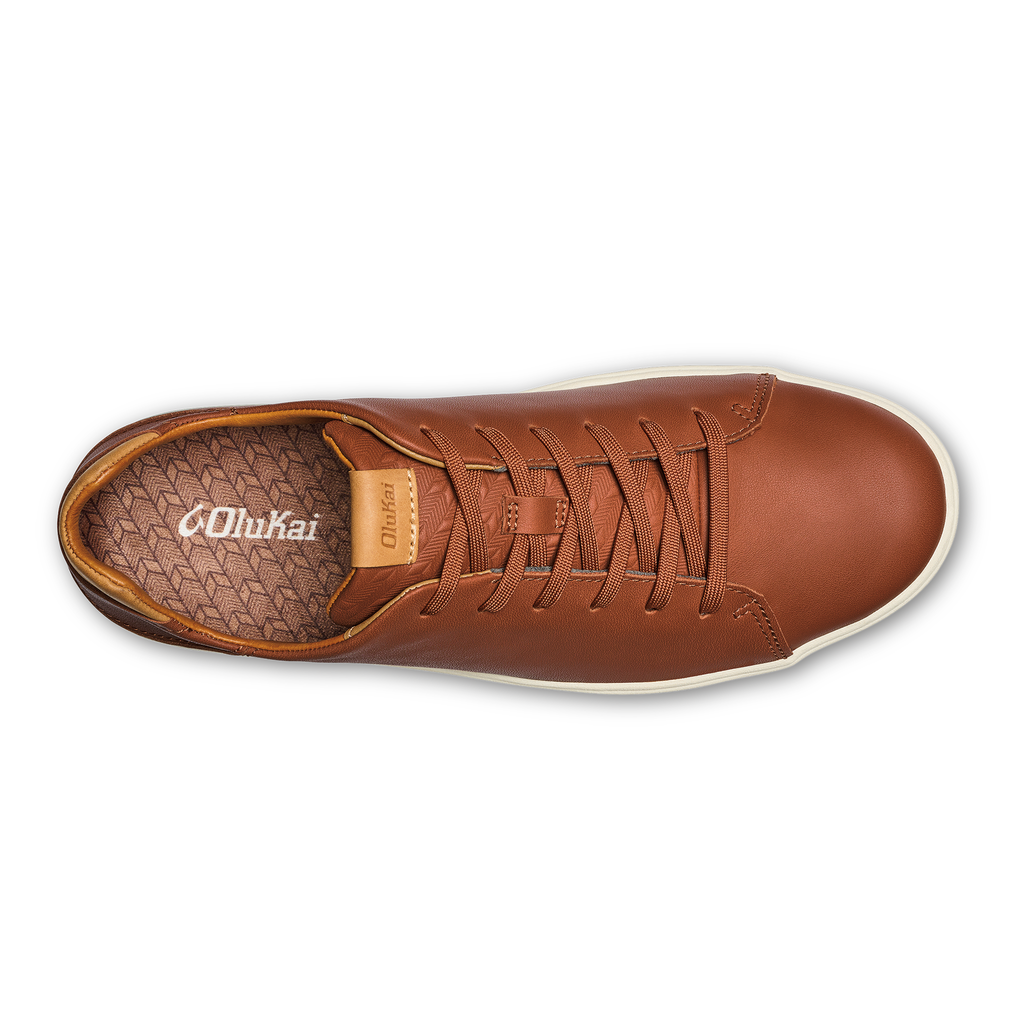 Made from premium full-grain waterproof leather, the Lae‘ahi Lī ‘Ili offers a blend of style and versatility with its natural color palette. The shoe is decorated with intricate debossed Hawaiian kapa artwork on the tongue, adding a touch of OluKai craftsmanship to its classic design.